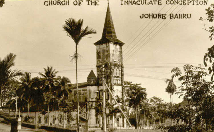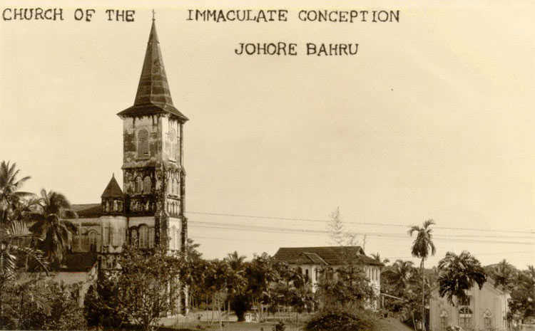 The present Church of the Immaculate Conception was built by Rev. Fr. M Duvelle, and blessed by Bishop Barillon at the end of 1921, when there was only a wooden bridge linking Johor and Singapore.